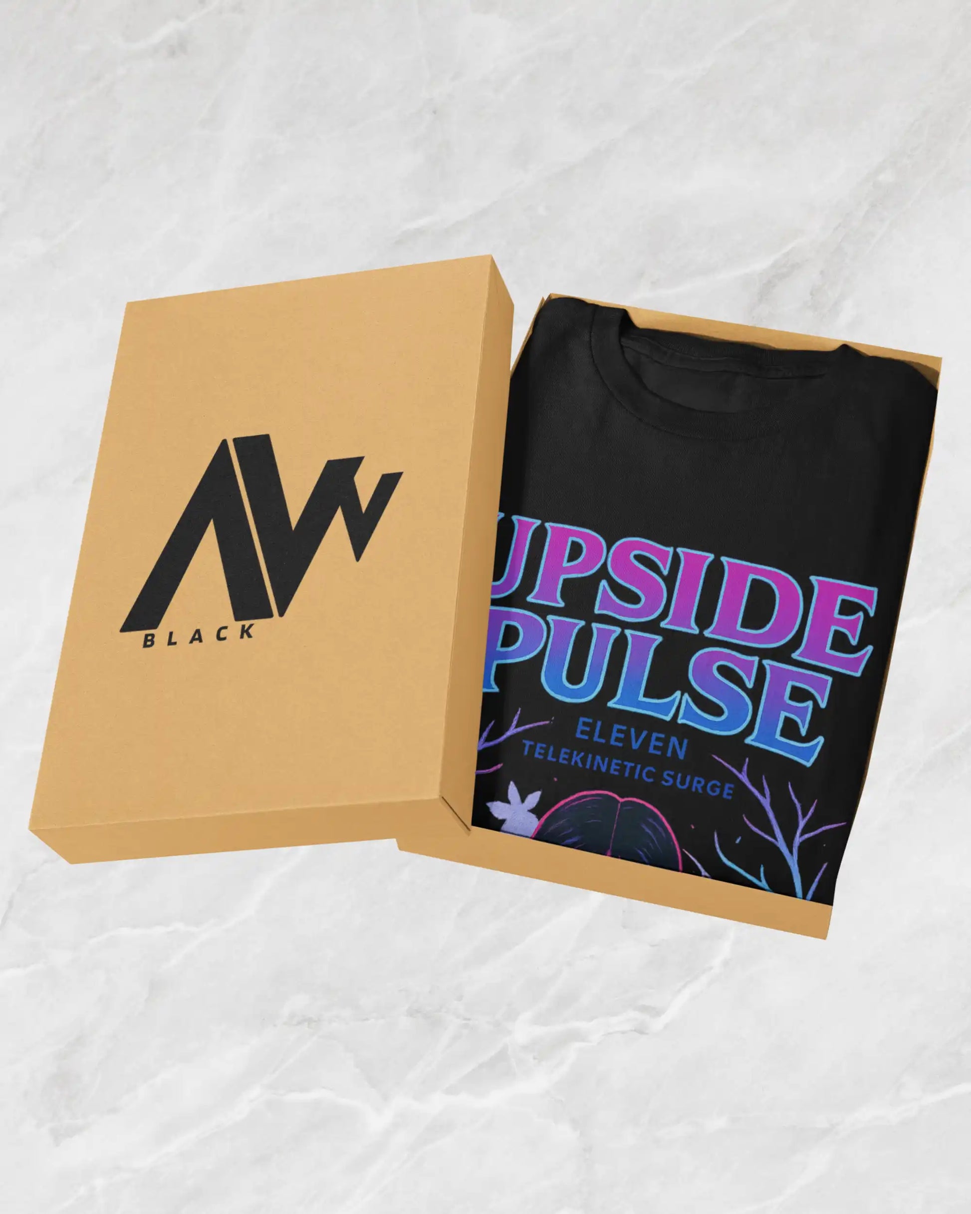 Featuring a bold, dynamic design of Eleven unleashing her iconic telekinetic powers, this shirt is a must-have for fans of the Upside Pulse series and lovers of supernatural adventures. The vibrant colors and detailed artwork make it a standout piece in any fan’s wardrobe, perfect for conventions, cosplay, or everyday wear.